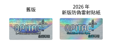 商品包裝盒印有下方 OPITAC® 註冊商標並有防偽雷射貼紙